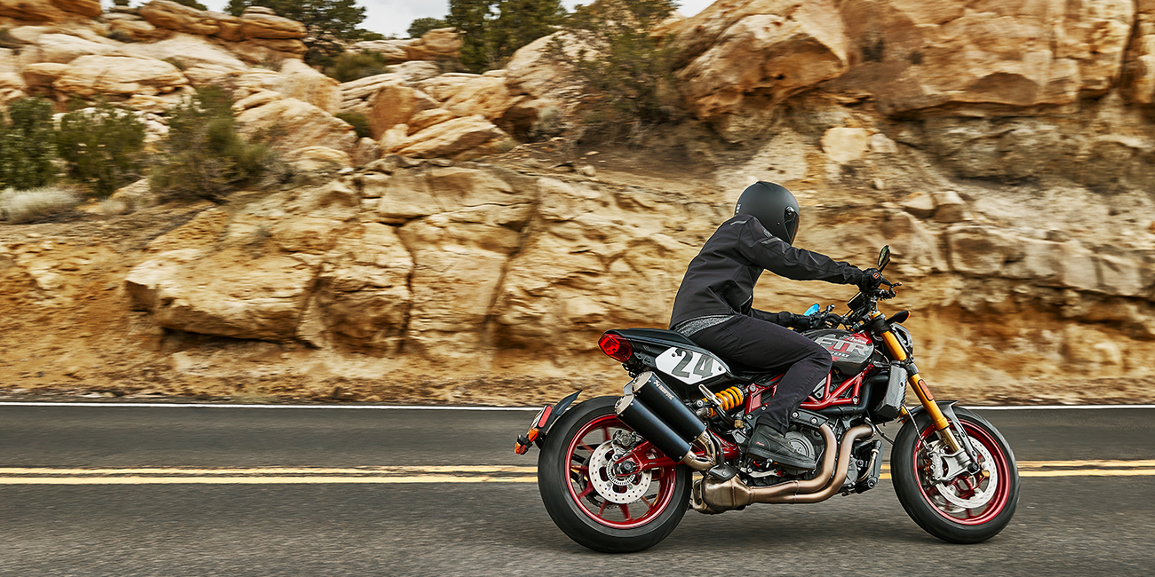 Qu'il tourne au ralenti ou à plein régime, le puissant bicylindre donne tout son caractère à la FTR. N'oubliez pas de monter le volume !